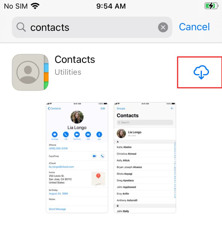 If you can't search out Contacts app, or you're sure you've deleted the app on your iPhone, then downloading it from App Store is your best bet. Follow these steps to continue: