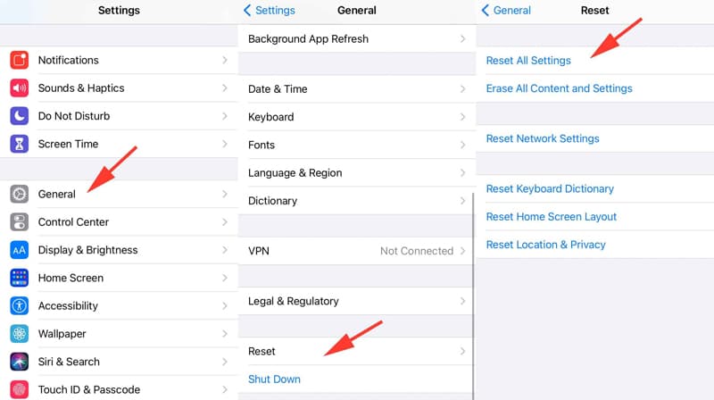 2. Then, tap "Reset All Settings". You'll be asked to enter your passcode, then just type your passcode and tap "Reset All Settings" to confirm.