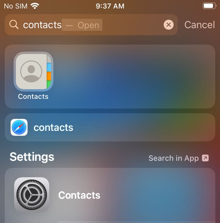 In the first place, you can search for "Contacts" through the search bar to check if the app is still on your iPhone. Because the app may just be removed from home screen or moved to the folder like "Extras" or "Utilities" by mistake, but you didn't notice this situation right away. The Contacts didn't disappear from your iPhone actually.